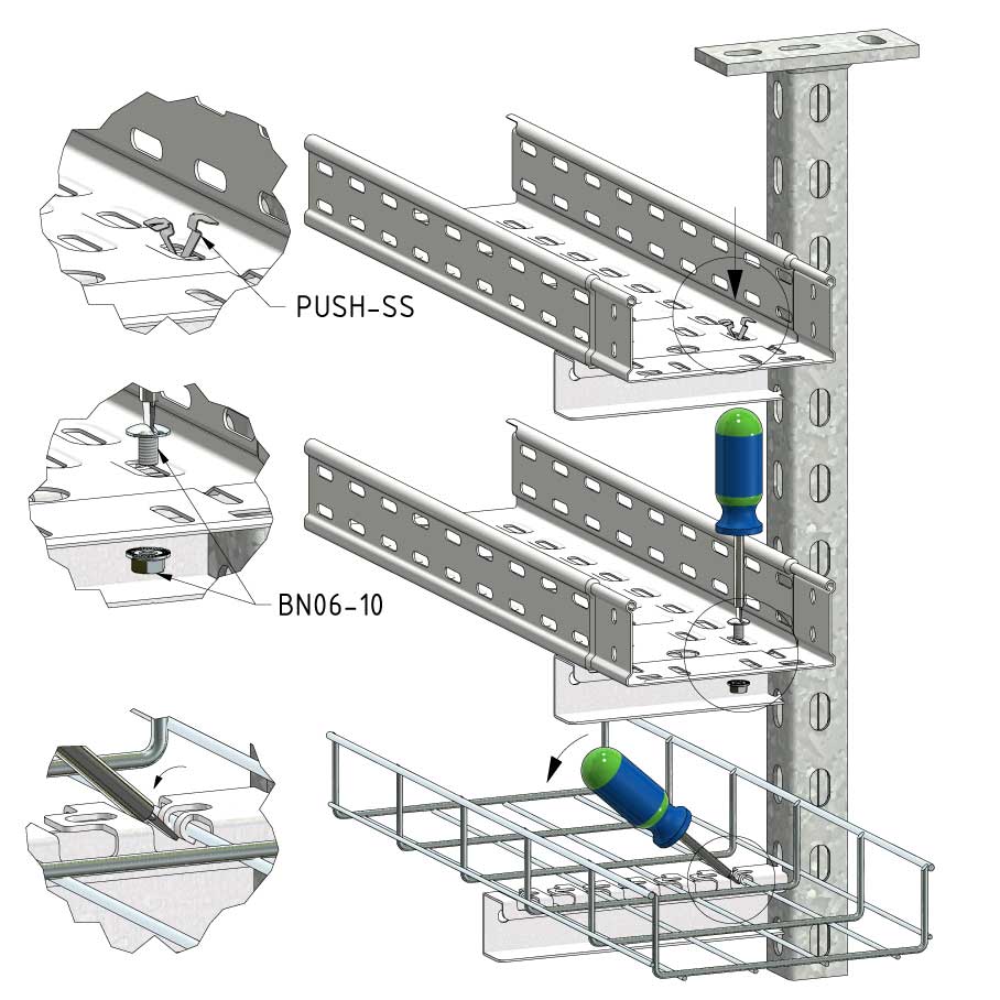 Discover the power of Trayco: with an impressive load capacity of no less than 135 kilograms and a high-quality Ultra Galva coating that protects against aggressive environments, with self-healing properties. Thanks to the innovative 'Twist & Fix' mounting technique, you install our systems quickly and easily, without compromising on quality - efficiency that saves you time and money.